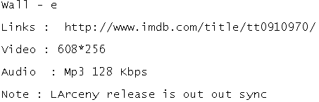 Release Name : Wall-E.2008.PROPER.DVDRip.XviD-ULTRASON
