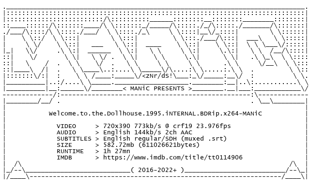 Release Name : Welcome.to.the.Dollhouse.1995.iNTERNAL.BDRip.x264-MANiC