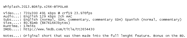 Hello, I found the full-length Whiplash 2014 movie, and packaged it similar to other releases here on RLSXTVT:
