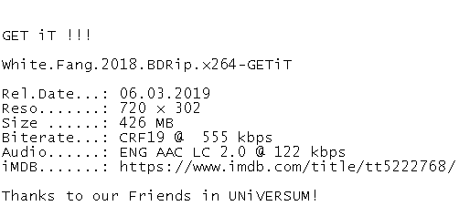 Release Name : White.Fang.2018.BDRip.x264-GETiT