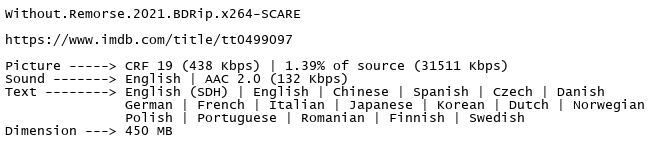 Release Name : Without.Remorse.2021.BDRip.x264-SCARE