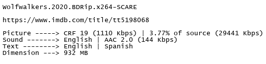 Release Name : Wolfwalkers.2020.BDRip.x264-SCARE