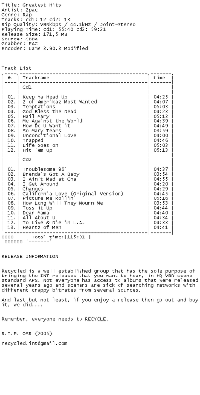 Release Name : 2pac-Greatest.Hits.2CD.Retail.Proper.1998.iNT-Recycled