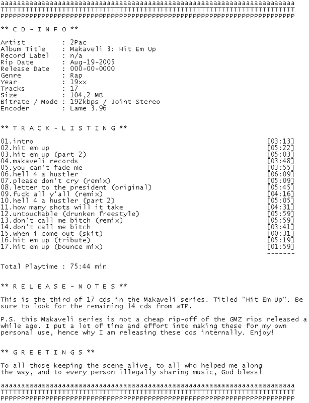 Release Name : 2pac-Makaveli.03.Hit.Em.Up.19xx.iNT-aTP