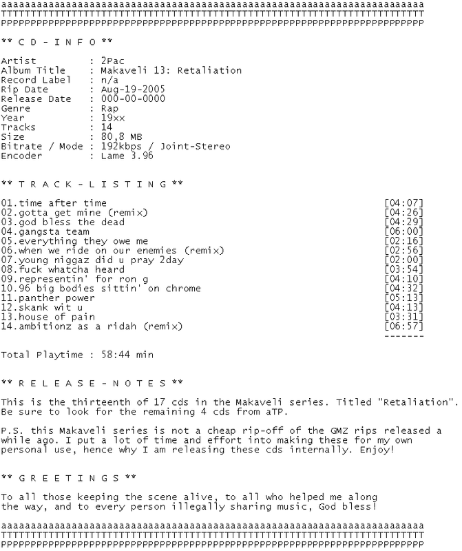 Release Name : 2pac-Makaveli.13.Retaliation.19xx.iNT-aTP