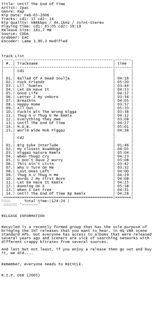 Release Name : 2pac-Until.The.End.Of.Time.2CD.Retail.2001-Recycled.INT