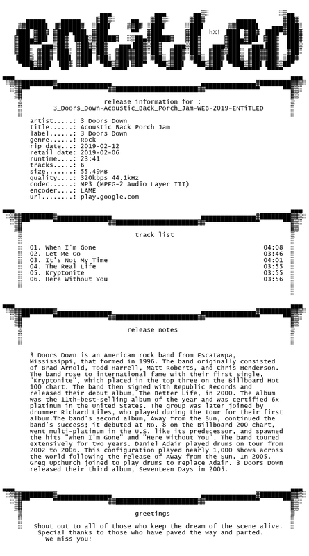 https://multiup.org/download/c20f1960b126337fd6ad7d2905c319a0/3.Doors.Down-Acoustic.Back.Porch.Jam.WEB.2019-ENTiTLED.rar