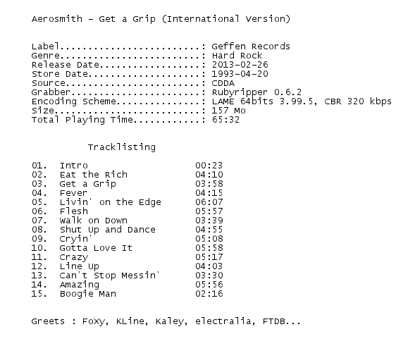 Release Name : Aerosmith-Get.a.Grip.International.Version.1993-FADA