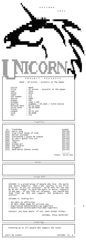 Release Name : Band.Of.Horses-Acoustic.at.the.Ryman.CD.2014-UNiCORN.INT