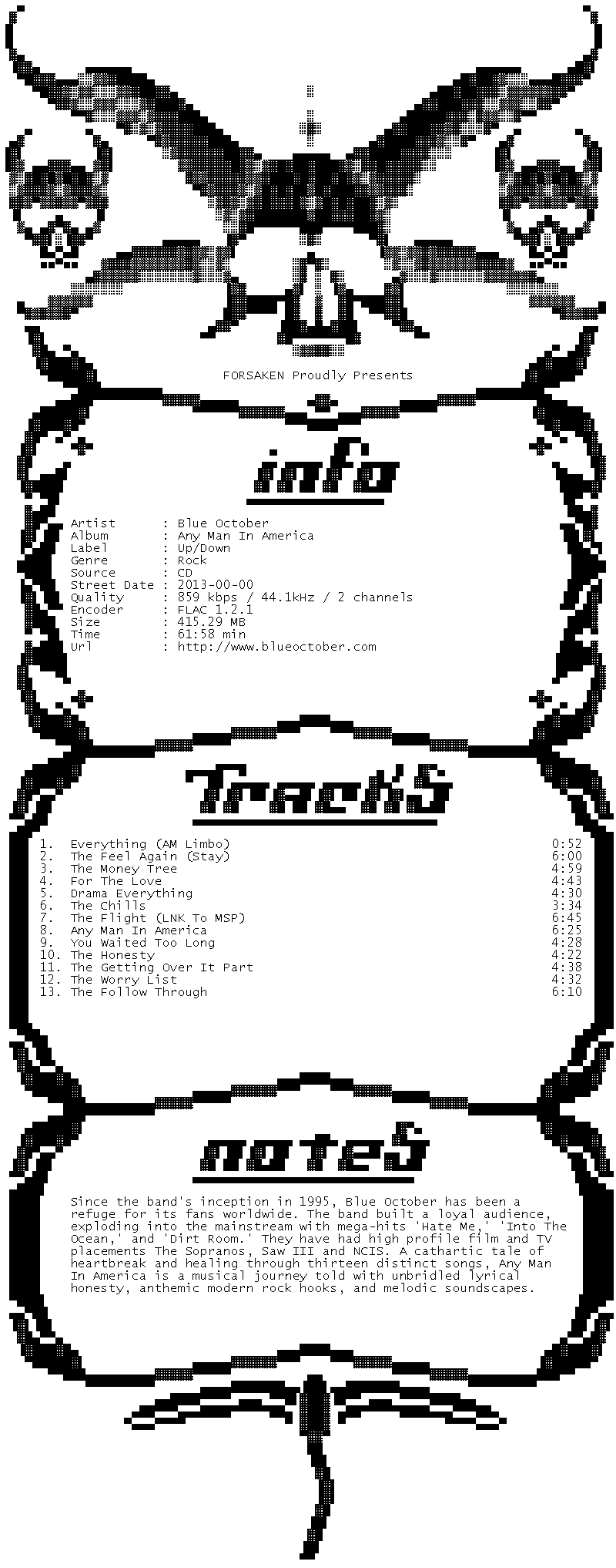 Release Name : Blue.October-Any.Man.In.America.CD.FLAC.2013-FORSAKEN