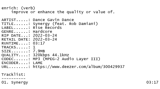Release Name : Dance.Gavin.Dance-Synergy.feat.Rob.Damiani.SINGLE.WEB.2022-ENRiCH