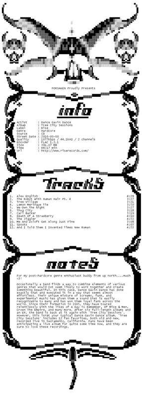 Release Name : Dance.Gavin.Dance-Tree.City.Sessions.CD.FLAC.2016-FORSAKEN