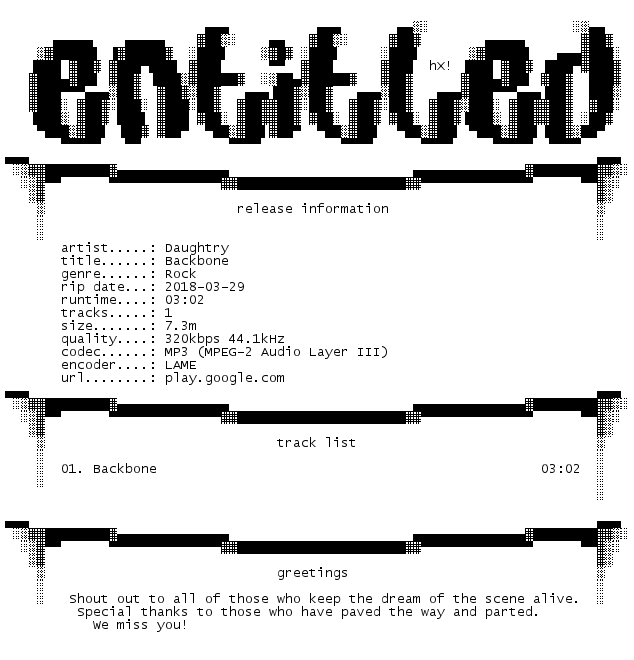 Release Name : Daughtry-Backbone.SINGLE.WEB.2018-ENTiTLED