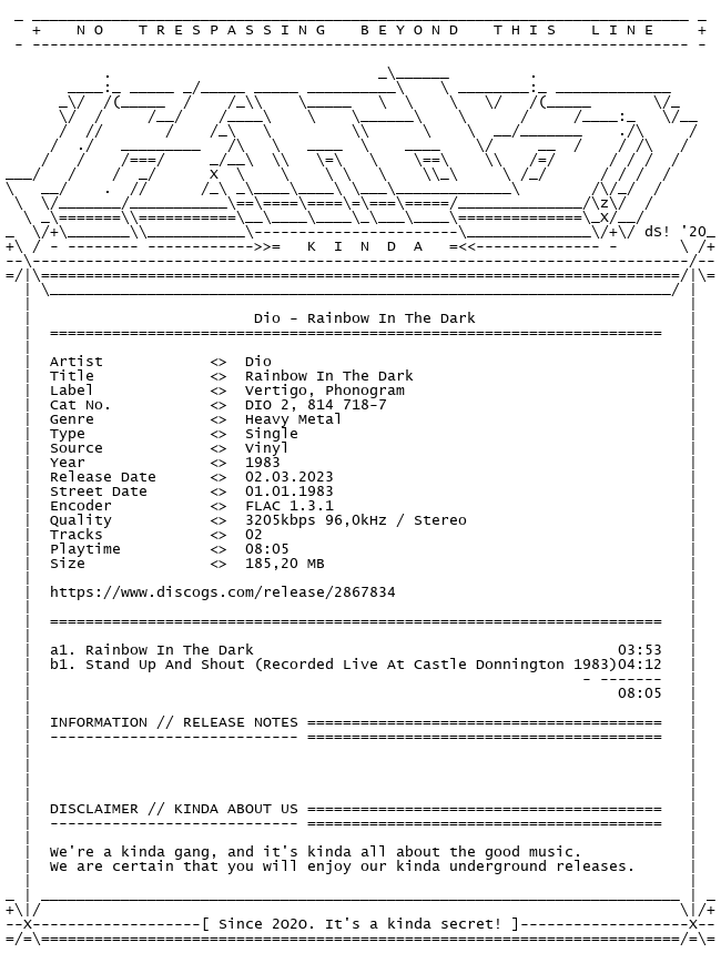 Release Name : Dio-Rainbow.In.The.Dark.7INCH.VLS.FLAC.1983-KINDA