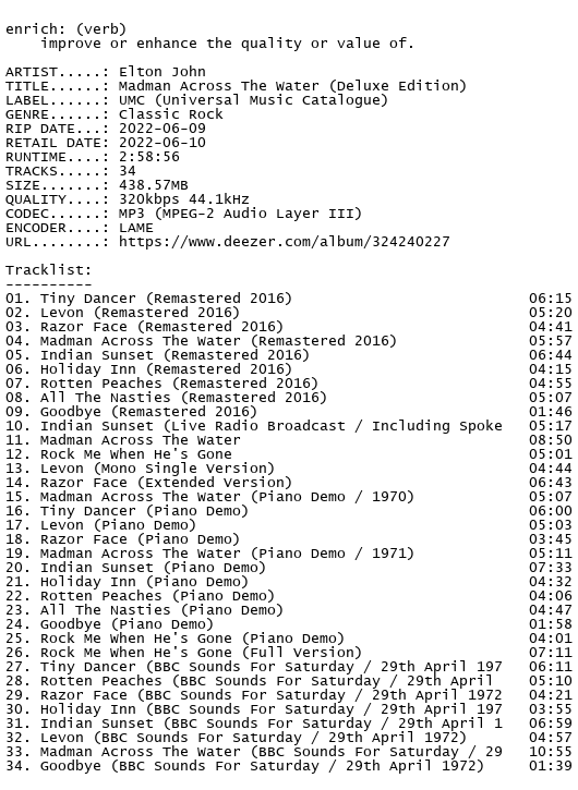 Release Name : Elton.John-Madman.Across.The.Water.Deluxe.Edition.WEB.2022-ENRiCH