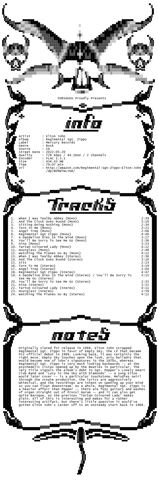 Release Name : Elton.John-Regimental.Sgt.Zippo.CD.FLAC.2022-FORSAKEN