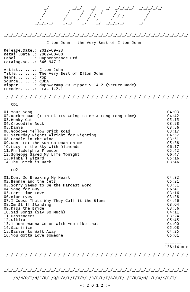 Release Name : Elton.John-The.Very.Best.of.Elton.John.2CD.FLAC.2002-LoKET