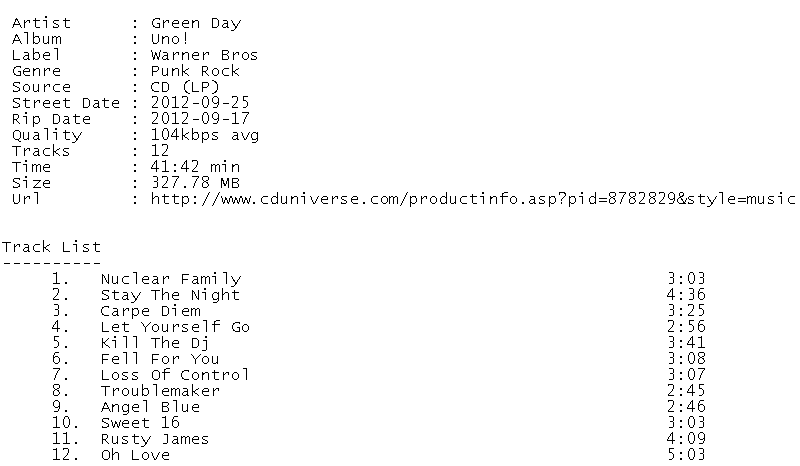 Release Name : Green.Day-Uno.CD.FLAC.2012-BriBerY