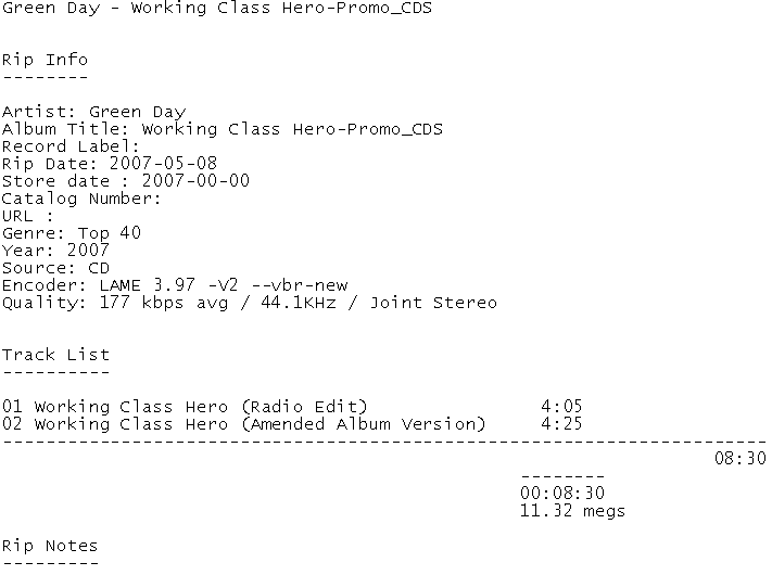Release Name : Green.Day-Working.Class.Hero.Promo.CDS.2007-WRE