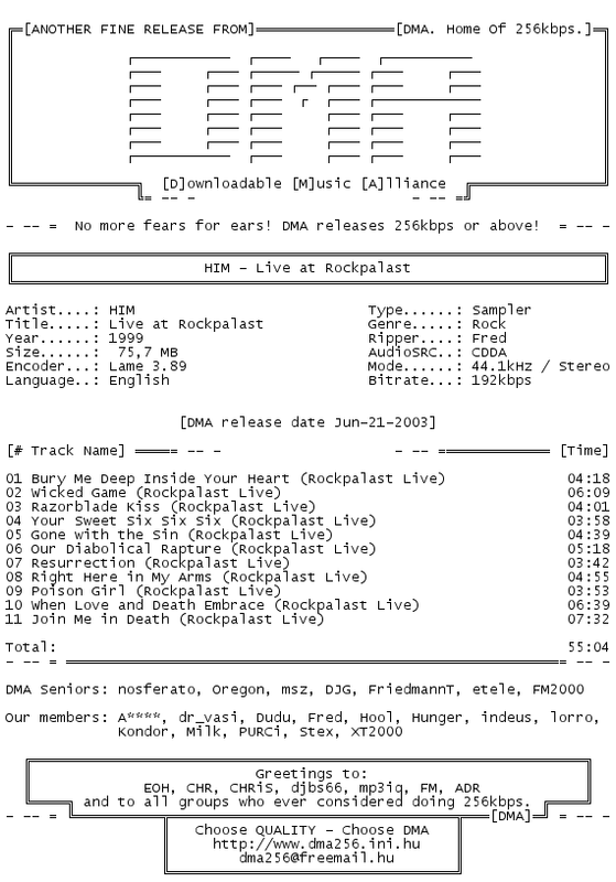 Release Name : HIM-Live.at.Rockpalast.1999-DMA