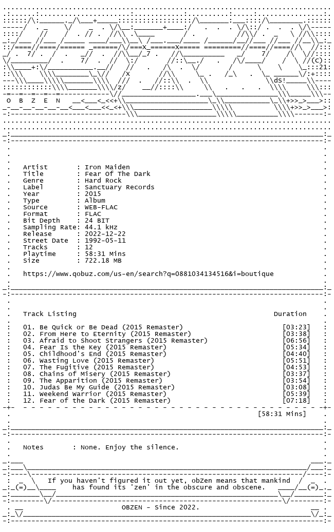 Release Name : Iron.Maiden-Fear.Of.The.Dark.24.44.WEB.FLAC.REMASTERED.2015-OBZEN