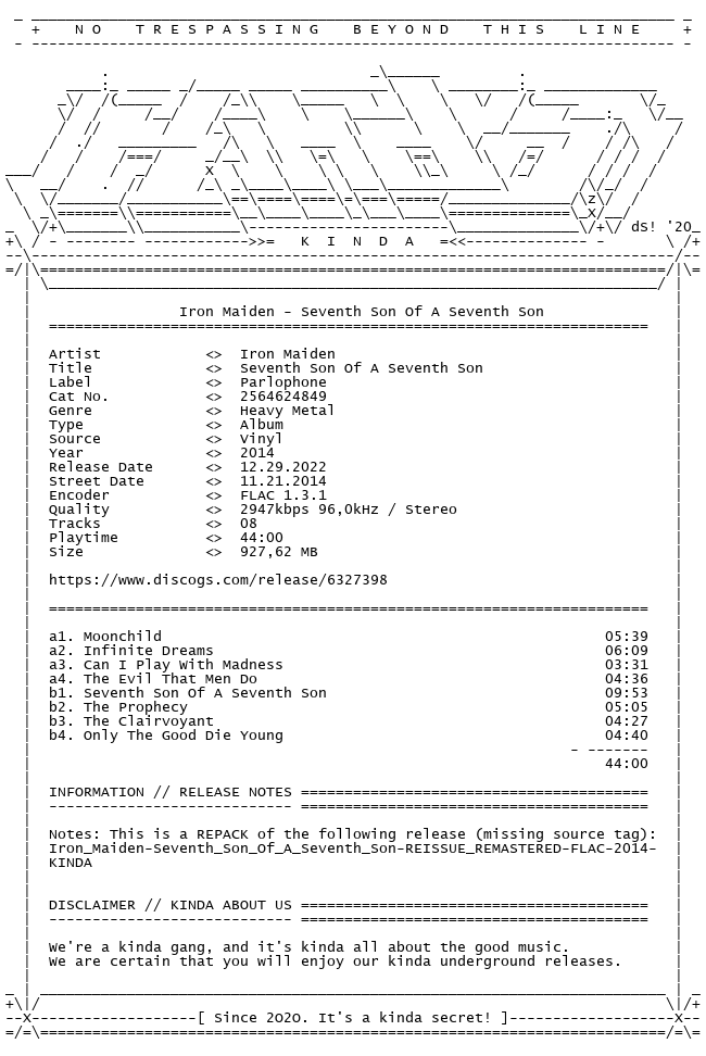 Release Name : Iron.Maiden-Seventh.Son.Of.A.Seventh.Son.REPACK.REISSUE.REMASTERED.VINYL.FLAC.2014-KINDA