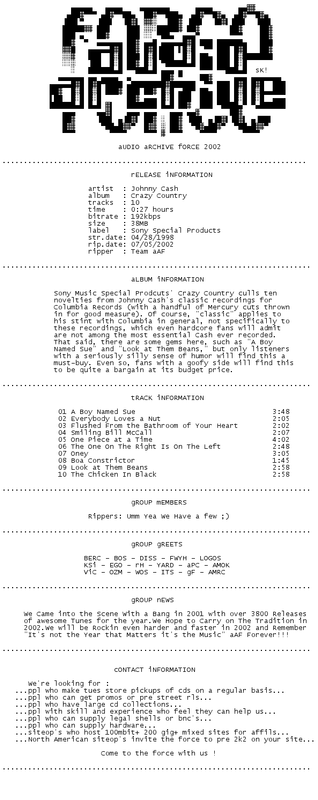 Release Name : Johnny.Cash-Crazy.Country.1998-aAF