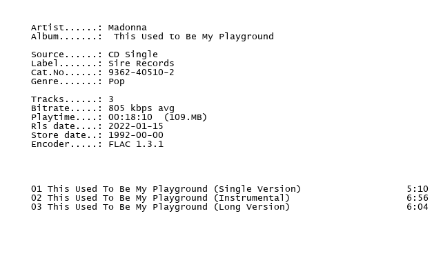 Release Name : Madonna-This.Used.To.Be.My.Playground.9362-40510-2.CDS.FLAC.1992-WRE
