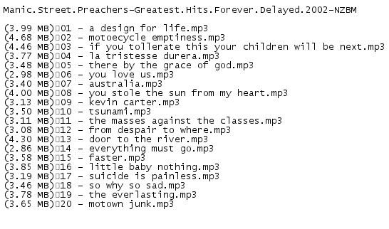 Release Name : Manic.Street.Preachers-Greatest.Hits.Forever.Delayed.2002-NZBM