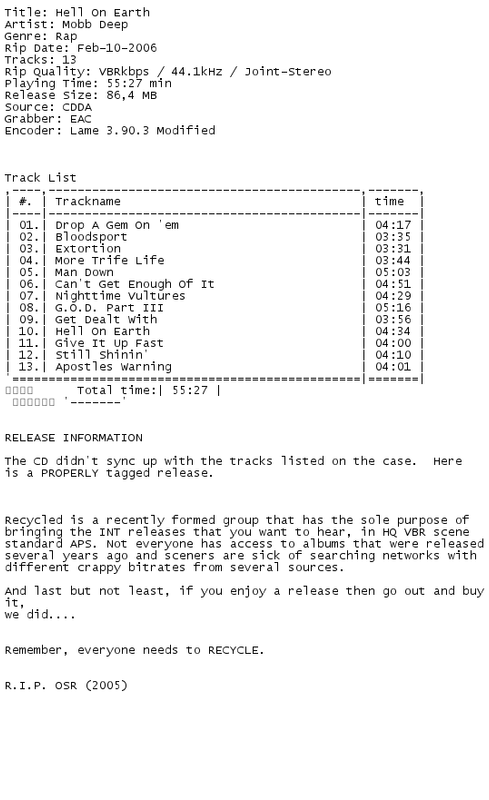 Release Name : Mobb.Deep-Hell.On.Earth.Proper.Retail.1996.INT-Recycled
