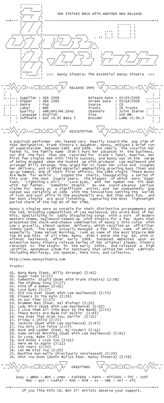 Release Name : Nancy.Sinatra-The.Essential.Nancy.Sinatra.2006-SER
