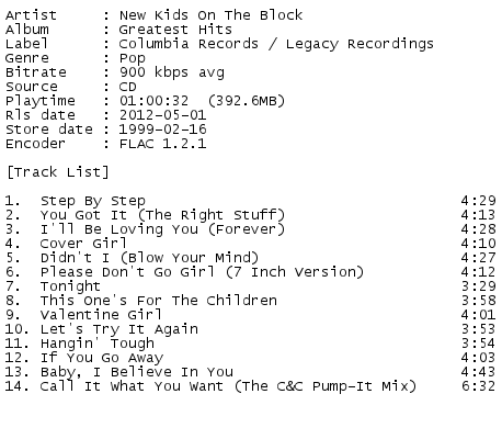 Release Name : New.Kids.On.The.Block-Greatest.Hits.CD.FLAC.1999-PERFECT