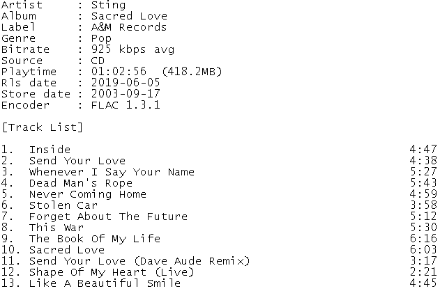 Release Name : Sting-Sacred.Love.CD.FLAC.2003-PERFECT