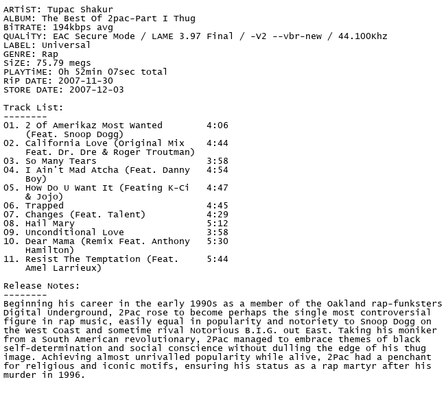 Release Name : Tupac.Shakur-The.Best.Of.2pac.Part.I.Thug.2007-404