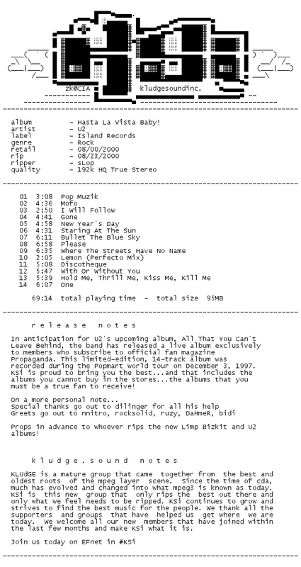 Release Name : U2-Hasta.La.Vista.Baby.2000-KSi