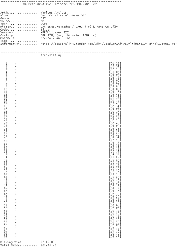 Release Name : VA-Dead.Or.Alive.Ultimate.OST.3CD.2005-P2P
