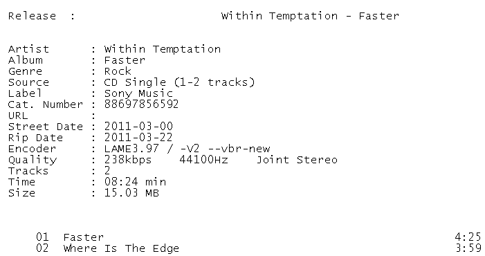 Release Name : Within.Temptation-Faster.88697856592.CDS.2011-211