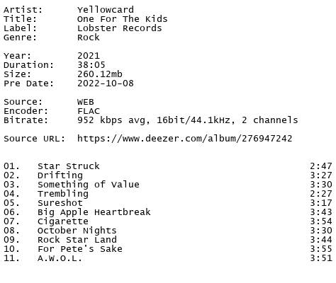 Release Name : Yellowcard-One.For.The.Kids.Remastered.16BIT.WEB.FLAC.2021-VEXED