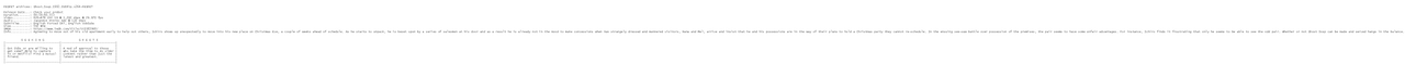 Agreeing to move out of his old apartment early to help out others, Ichiro shows up unexpectedly to move into his new place on Christmas Eve, a couple of weeks ahead of schedule. As he starts to unpack, he is beset upon by a series of salesmen at his door and as a result he is already not in the mood to make concessions when two strangely dressed and mannered visitors, Nana and Mel, arrive and insist that he and his possessions are in the way of their plans to hold a Christmas party they cannot re-schedule. In the ensuing see-saw battle over possession of the premises, the pair seems to have some unfair advantages. For instance, Ichiro finds it frustrating that only he seems to be able to see the odd pair. Whether or not Ghost Soup can be made and served hangs in the balance.