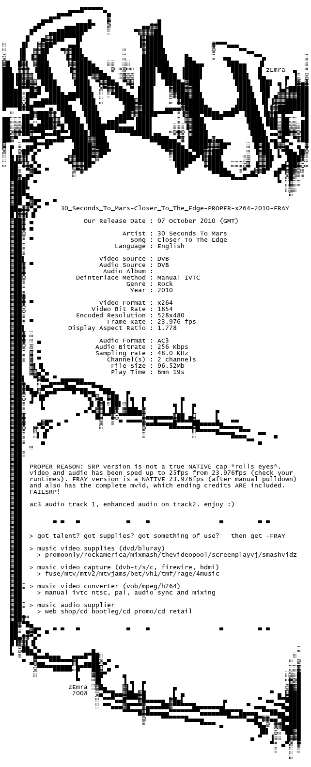 Release Name : 30.Seconds.To.Mars-Closer.To.The.Edge.PROPER.x264.2010-FRAY
