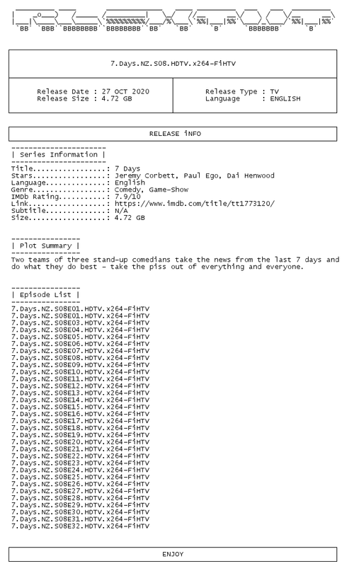 Release Name : 7.Days.NZ.S08.HDTV.x264-FiHTV