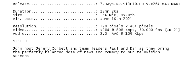 Release Name : 7.Days.NZ.S13E10.HDTV.x264-MAKIMAKI