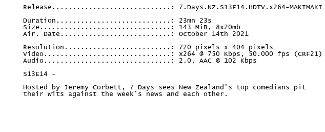 Release Name : 7.Days.NZ.S13E14.HDTV.x264-MAKIMAKI