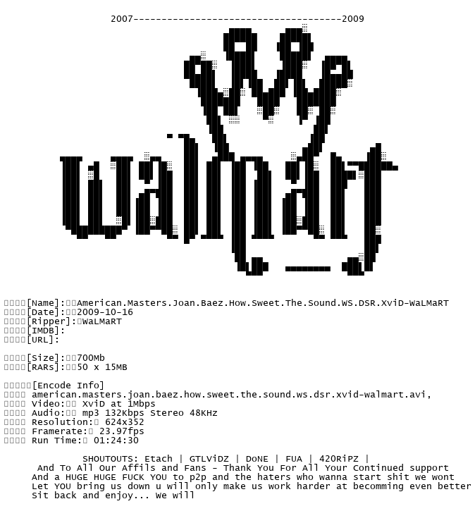 Release Name : American.Masters.Joan.Baez.How.Sweet.The.Sound.WS.DSR.XviD-WaLMaRT