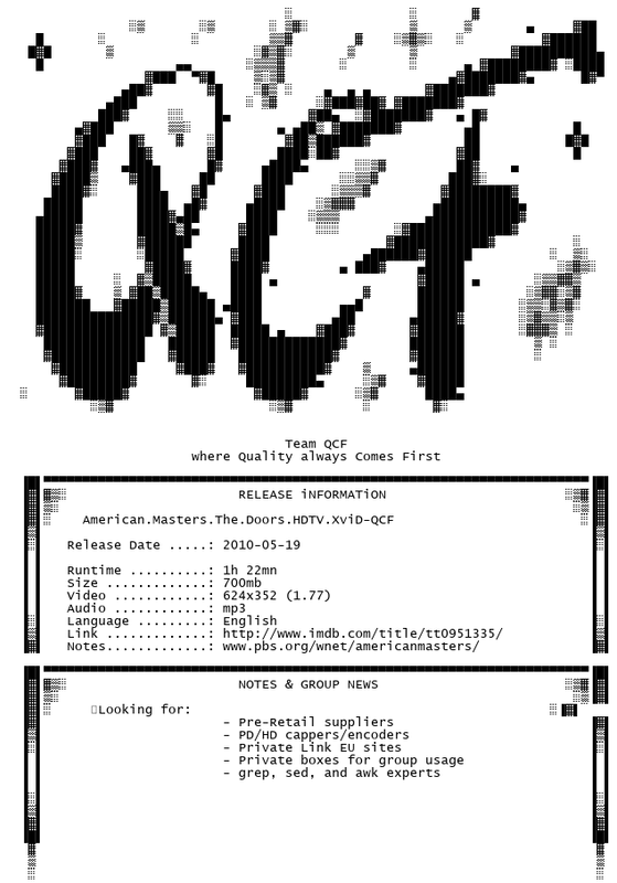 Release Name : American.Masters.The.Doors.HDTV.XviD-QCF