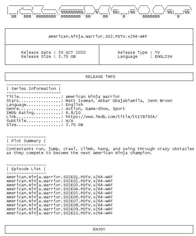 Release Name : American.Ninja.Warrior.S02.PDTV.x264-W4F