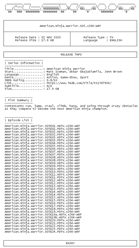 Release Name : American.Ninja.Warrior.S05.x264-W4F