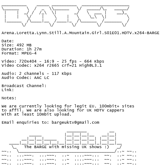 Release Name : Arena.Loretta.Lynn.Still.A.Mountain.Girl.S01E01.HDTV.x264-BARGE