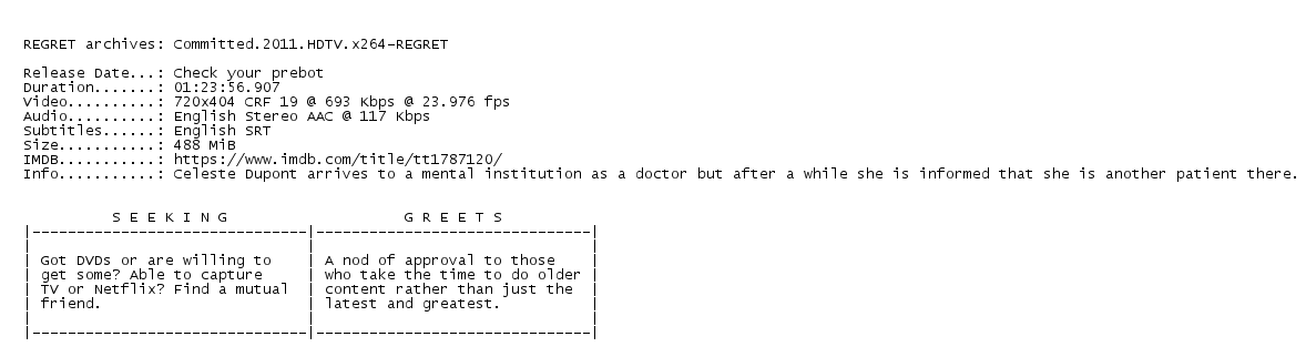 Release Name : Committed.2011.HDTV.x264-REGRET