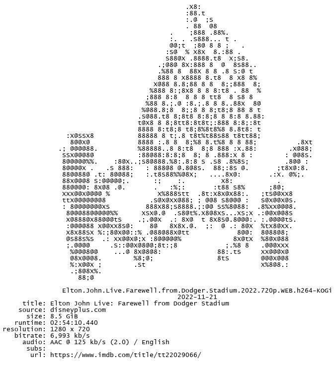 https://multiup.org/download/1d0bfe1bcf90b97b3e677bd3e6b83ccf/Elton.John.Live.Farewell.from.Dodger.Stadium.2022.720p.WEB.h264-KOGi.part1.rar